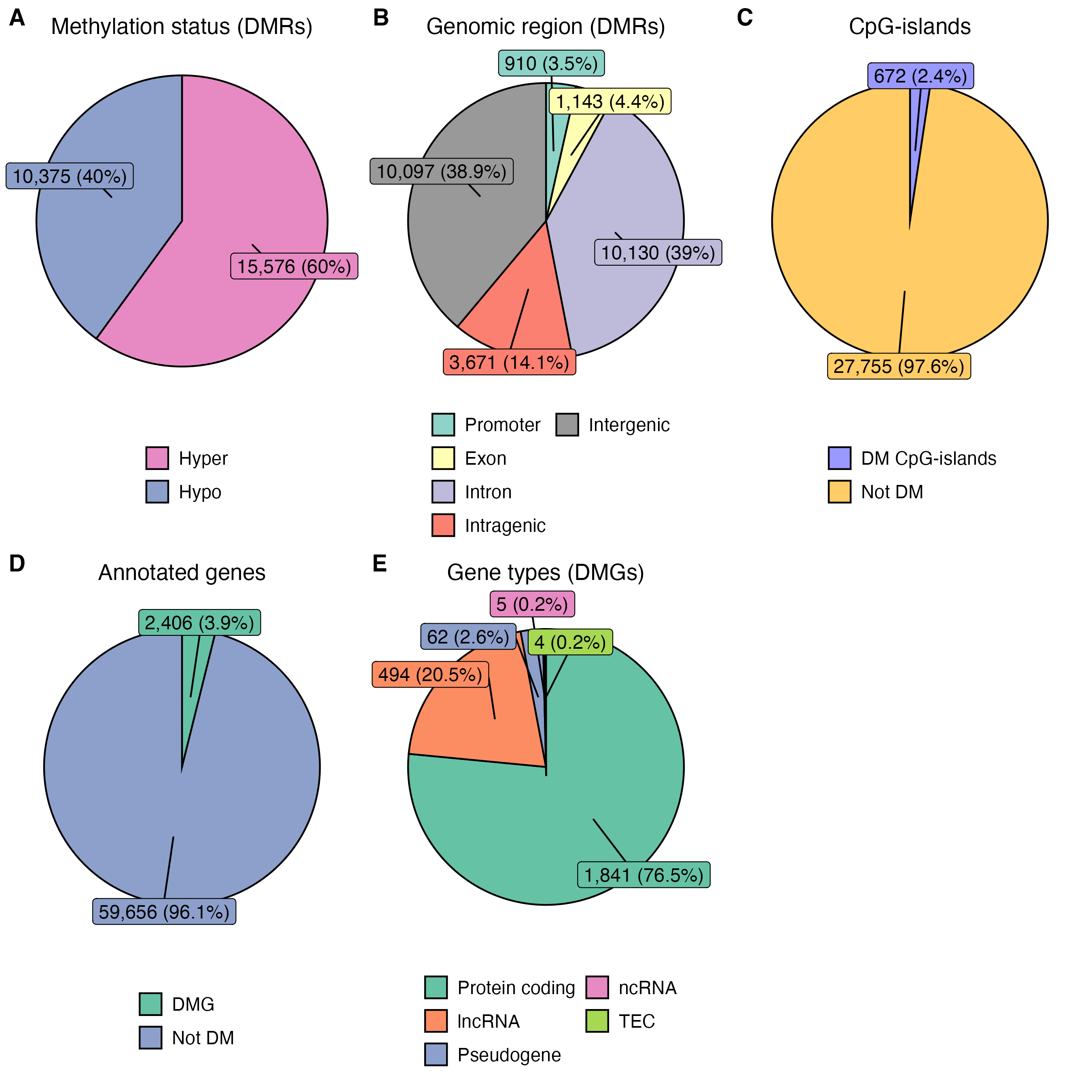 Find out which genomic regions (promoter, exon, intron, intergenic, CpG-islands) overlap with the DMRs.
