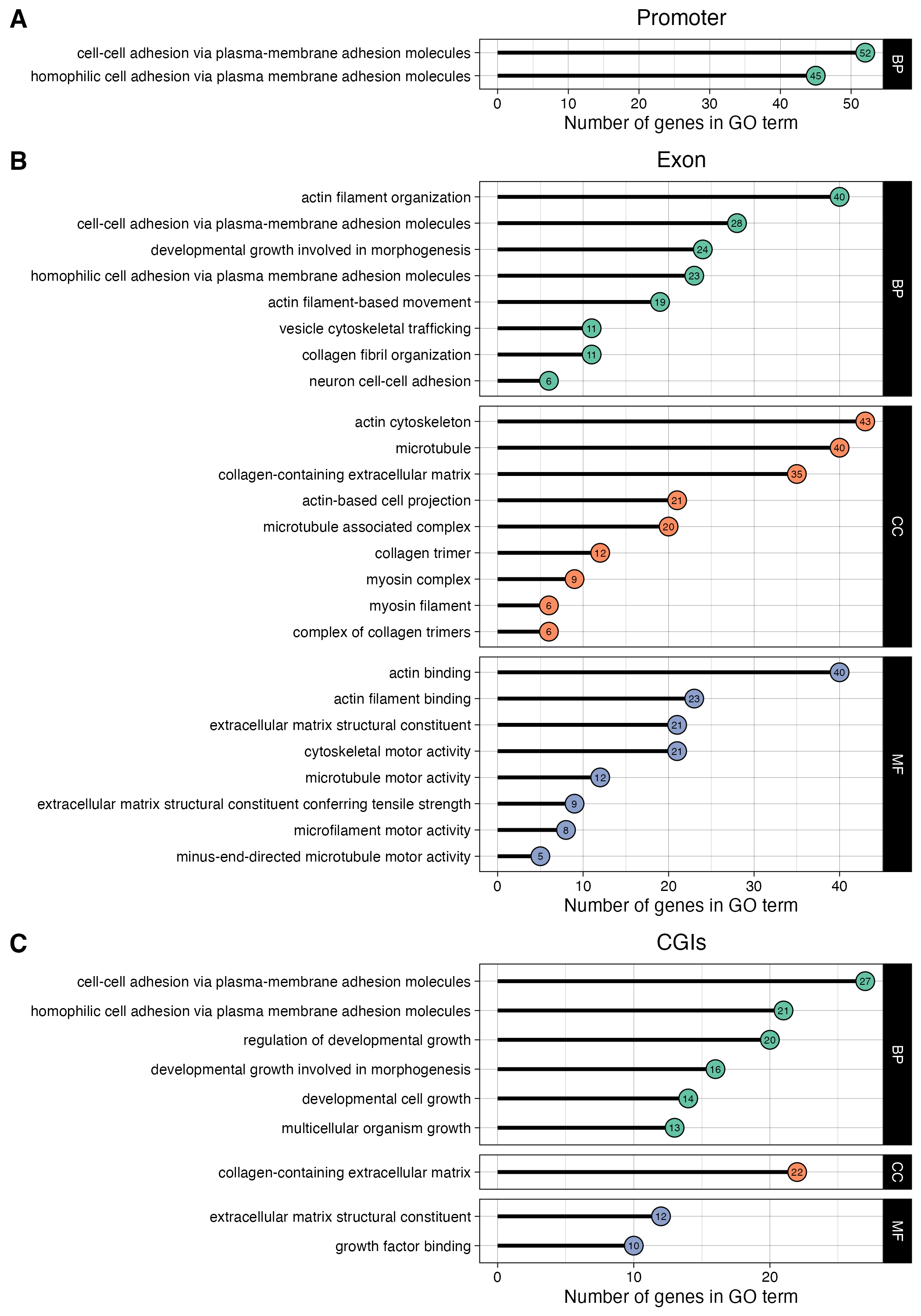 Generate figure 3 from PFOS MCF10A EMseq paper. The figure shows pathway enrichment results with GO terms matching the following keywords: